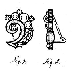 Trifari Alfred Philippe Patent 153392 Patent number D155392 filed on February 16, 1949 by Alfred Philippe and issued April 12, 1949. Click title above to view patent documents. Type: Brooch Design |