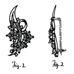 Trifari Alfred Philippe Patent 172192 Patent number D172192 filed on January 26, 1954 by Alfred Philippe and issued May 11, 1954. Click title above to view patent documents. Type: Brooch Design |